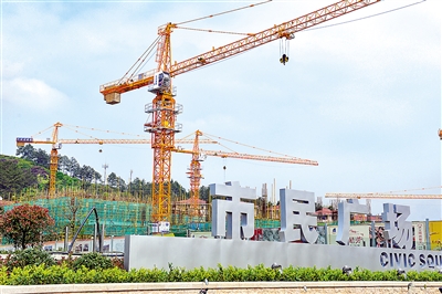 武夷山“四中心一廣場”項目占地151畝,總投資2.7億元,總建筑面積62700平方米,主要建設文化活動中心、體育活動中心、展覽展示中心、市民服務中心和市民廣場,在滿足廣場集會功能的同時,充分滿足市民和游客休閑、娛樂、健身等需要。圖為13日拍攝的項目建設現場。(朱宇 攝)
